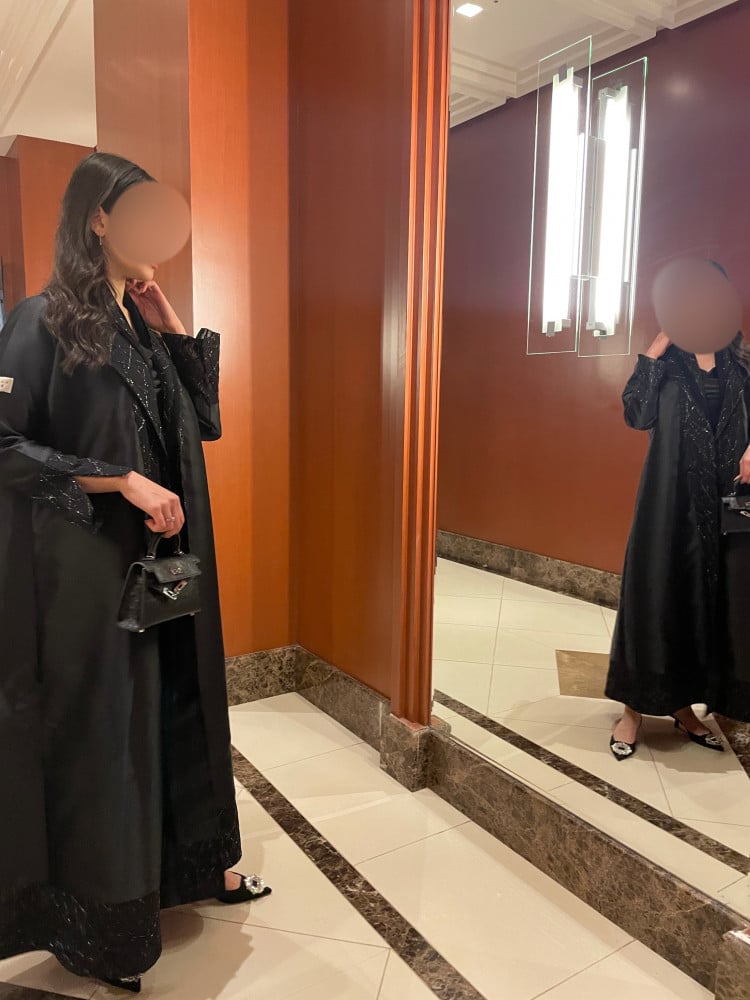 التفاصيل : تفته نص كلوش ، تطريز اسود ، السعر شامل الطرحة